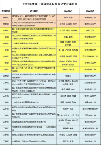 此外,大会还评选出了2020年中国土地科学论坛优秀论文。本届论坛共收到论文148篇,其中教师投稿论文41篇,博士生投稿论文18篇,硕士生投稿89篇。根据各位匿名评审专家评阅结果,共评选出33篇论文,其中:教师组11篇,博士研究生组7篇,硕士研究生组15篇。《中国土地科学》编辑部组织专家对入围的论文进行复审,最终评选出优秀论文20篇,其中:特等奖论文2篇,一等奖论文7篇,二等奖论文11篇。由亚博官网宋敏副教授指导、易路平同学完成的《规划管制下土地发展权受限价值测度----以湖北省为例》一文,荣获本届“中国土地科学论坛”优秀论文二等奖。