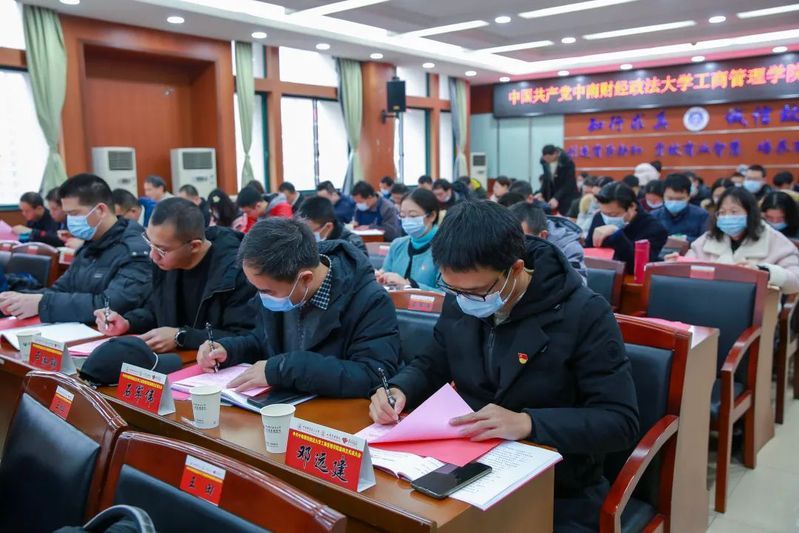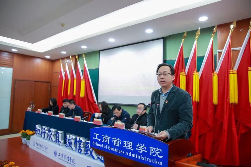 王华路代表学院新一届“两委”班子作了表态讲话。王书记表示新一届的“两委”班子要在学校第四次党代会精神的指导下认真履职尽责,结合学校发展战略与学院发展目标,充分发挥党建引领作用,争取早日实现“立足中南,面向世界,成为经法管融通的一流商学院”愿景。