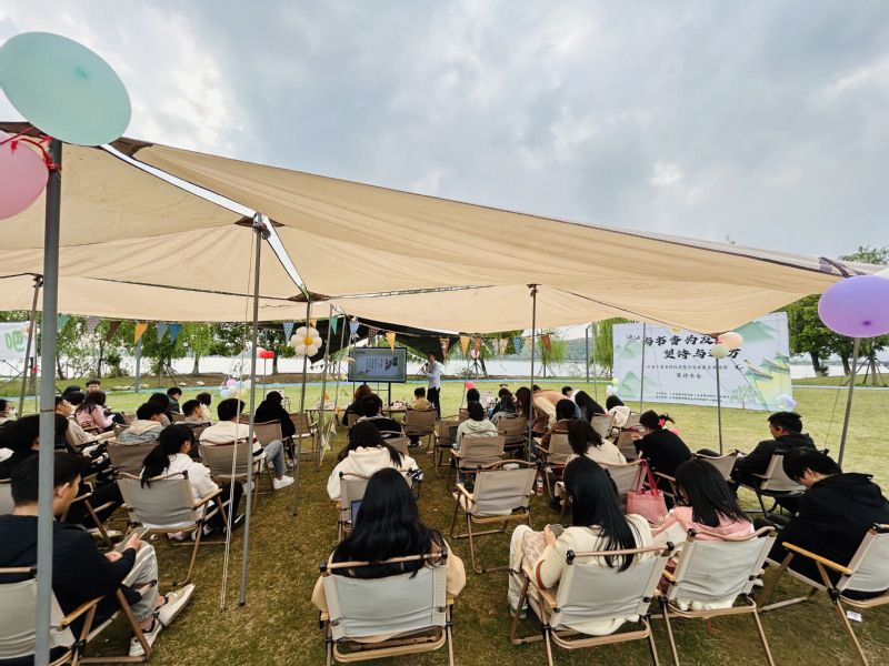 美好的春光,诗意的分享,同学们围绕诗词与生活展开分享与交流。桂老师从理解生僻典故到抉择诗与远方解答同学们的疑惑,并为大家推荐自己的诗词书单:《苏东坡传》《人间词话》与《迦陵谈词》,他说道:“只有以古今对话的方式走进诗词,才能与古人同频共振,感悟得失。”