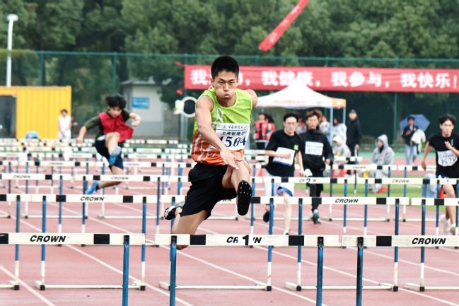在冲刺中一亮风采,在跨栏中一展雄姿。110m跨栏较量的是不竭的毅力,角逐的是拼搏的勇气。男子组薛宇凡同学跑出了猎豹的迅疾,跳出了羚羊的矫健,冲出了猛虎的劲魄,打破了校级记录。卢浩森同学、阿旺丹增同学也势如破竹,分别取得第4名和第7名好成绩。