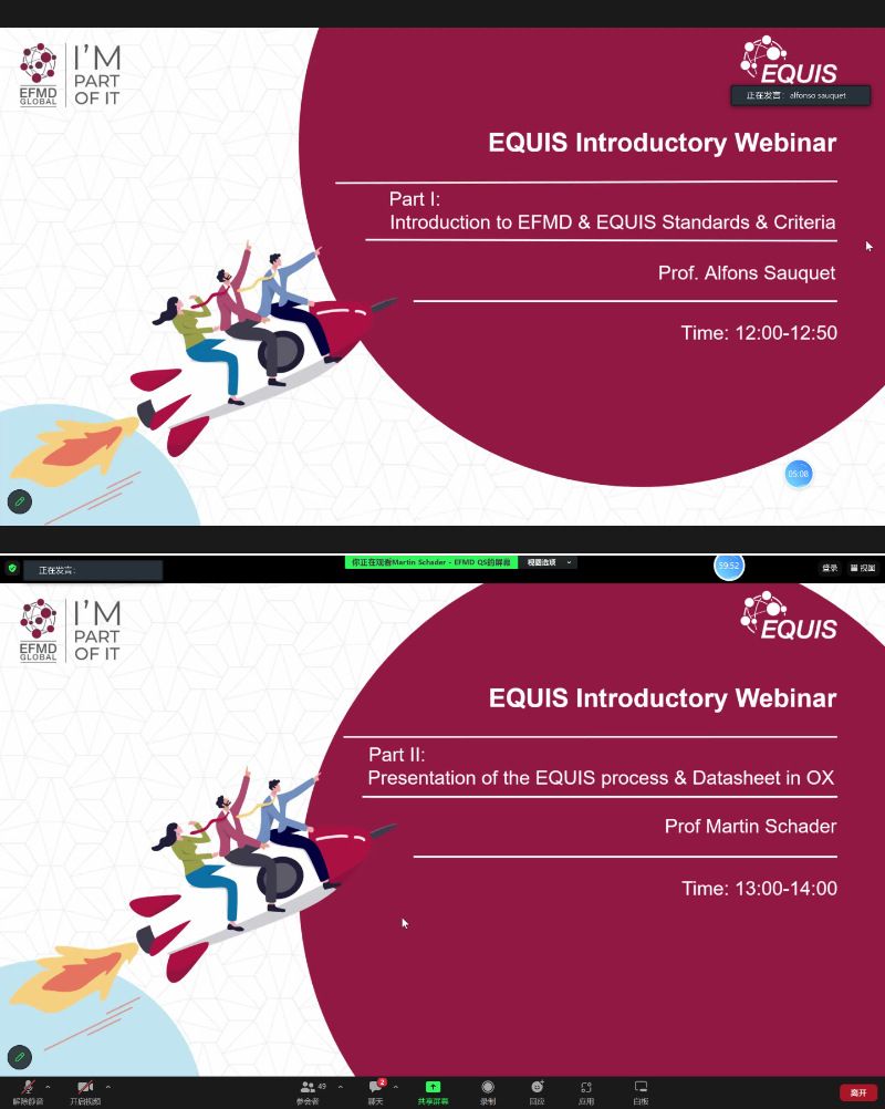 2023年11月28日,亚博官网国际认证办公室参与了“EQUIS启蒙研讨会(EQUIS Introductory Webinar)”,了解了欧洲管理发展基金会(European Foundation for Management Development,EFMD),初步学习了EQUIS认证理念、认证标准体系和认证流程(见图3)。