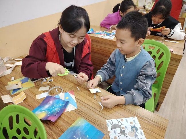 In Jinheyuan on October 26th, volunteers led the children into the world of non-heritage handicrafts - paper turning flower. After listening to the explanation, the children concentrated on folding, flipping and pasting the paper, and worked together with the volunteers to transform a piece of individual colored paper into a beautiful flower-flipping work. In the science experiment themed activity on November 9, the volunteers organized the children to carry out the interesting experiment of “disappearing colors”. The fascinating experimental science video attracted all the children's attention and instantly aroused their curiosity and desire to explore. In the last activity of the semester at Golden Crane Garden, volunteers made cupcakes with the children. At the activity site, the children gathered in front of the cupcake embryo to play with their creativity and imagination, and some of the cupcakes were covered with thick “snow”, while others were outlined with buttercream to form cute cartoon images.