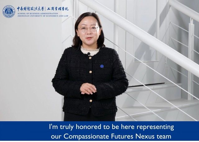 At the awards ceremony, a video of the acceptance speech by Li Qing, a 2015 MBA alumnus representing the school, was played. Li Qing expressed that it was a great honor to be a part of the "Compassionate Futures Nexus" and to rely on the rich resources provided by the school to collaborate closely with alumni, faculty, current students, employers, and other stakeholders to advance a series of meaningful public welfare activities and convey the concept of social responsibility.