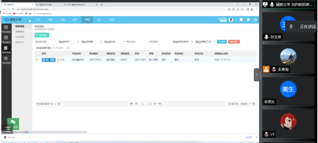 期末临近,为了切实做好线上考核工作,最大程度地降低疫情对本科教学质量的影响,近日学院安排工科数学分析信息大类课程组对在线考试的组织方式和相关平台进行调研。课程团队结合以前在线考试的经验和课程特点及需求,分别于1130号和121号对智慧树和融智云在线考试平台进行了调研。