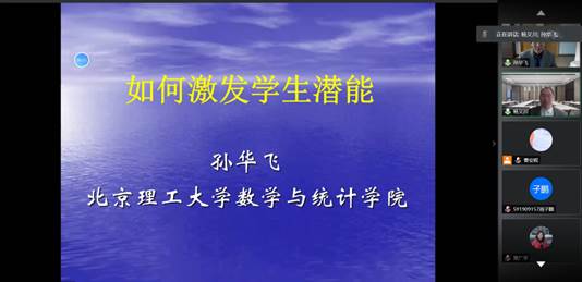 12月30日,“北航数学教学研究中心名师讲座” 首次线上报告活动顺利举行。北京理工大学孙华飞教授为学院师生作了《如何激发学生潜能》专题讲座,该报告吸引了来自北京地区包括北大等高校、以及江西、云南等地多所高校的师生在线学习交流。讲座由北航KY开元集团官网本科教学副院长杨义川教授主持。