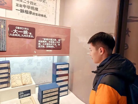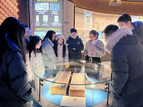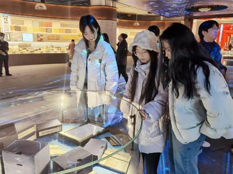 下午4点,两校师生抵达民族文化宫,在讲解员的带领下参观学习铸牢中华民族共同体意识文物古籍展 大家近距离观摩珍贵的历史资料,认真聆听蕴含在古籍文物背后的生动故事,用心体会文物背后的深刻内涵,体悟中华民族在漫长历史进程中,各民族共同创造发展的灿烂文化,感受休戚与共、荣辱与共、生死与共、命运与共的中华民族共同体理念。