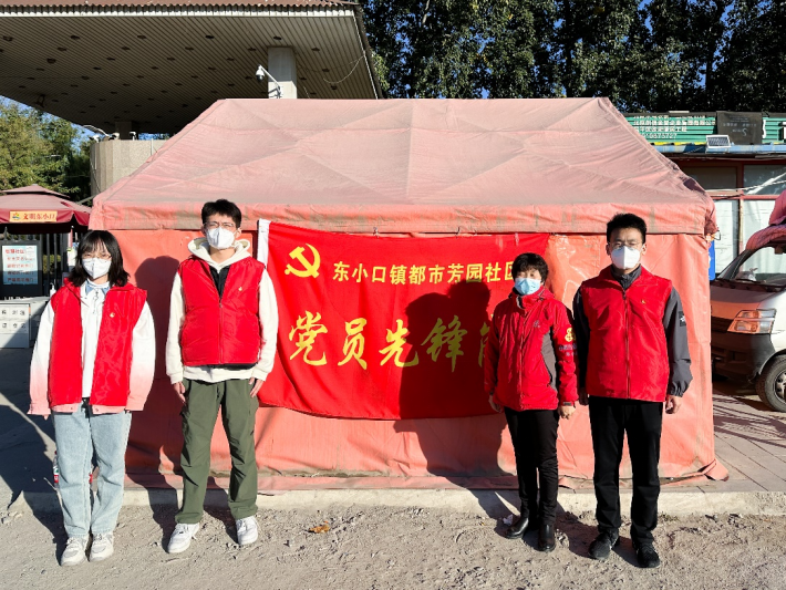 坚持服务一线,“小卡口”架起“连心桥”。为迎接党的二十大胜利召开,筑牢首都疫情防控第一道屏障,自10月15至10月31日,支部党员分批前往都市芳园社区党员先锋岗值守,化身“守门员”。测温、扫码、查证、查验,4个动作、上千次重复,8个日夜,全成员覆盖,支部党员累计工作100余小时。在工作中,同志们坚持将心比心、以情换情,在完成工作的同时用温和的微笑与暖心的服务提高居民的幸福感和认同感。工作结束后大家总结道“引导过往人员配合防疫工作并不只是简单‘按规矩办事’,更要多一份耐心和热情,我们虽然从学校来,却要到居民‘心中去’。”