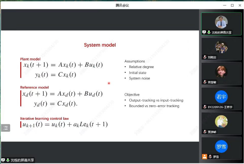 2022年11月24日,中国人民大学数学学院的沈栋教授应罗雪老师的邀请,通过线上的方式为KY开元集团官网师生带来了一场题为“Iterative Learning Control Over Random Fading Channels”的学术报告。