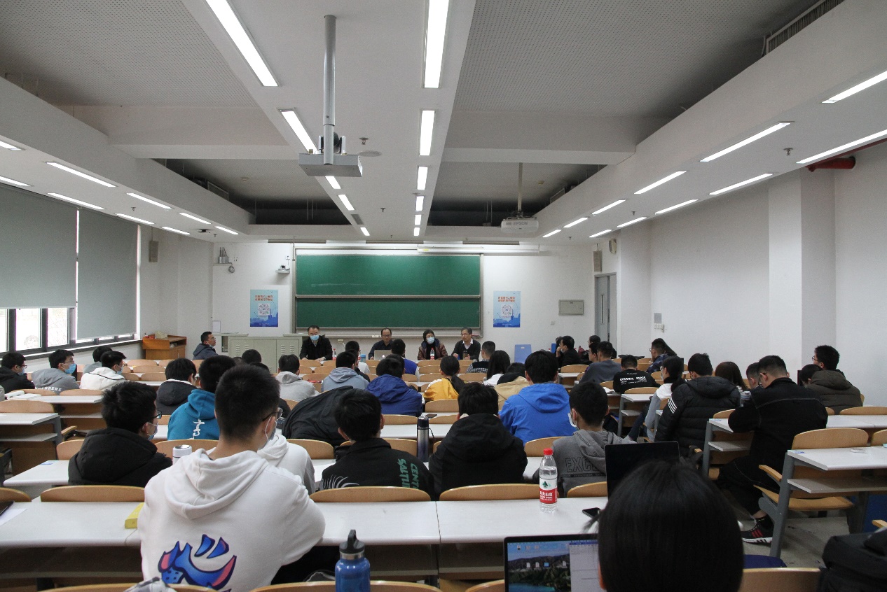 颁奖典礼前,中科院—北航华班座谈会在J5-101举行。巩馥洲老师和戴彧虹老师就同学们提出的有关中科院教学理念和方法、课程设置以及升学建议等方面的问题予以解答。同学们结合自己在北航华班的经历,在举办研讨班,增进学生课程兴趣,与其他高校课程共享、学分互认等多方面提出建议。巩老师指出,对于数学,重要的不是学了多少书本的知识,而是培养批判思维,提出问题、回答问题,勇于“抬杠”,同时要有创新能力,敢于“胡说八道”,大胆假设、小心求证。