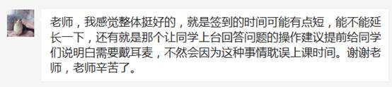 (三)对于教师语言基本要求。一是,语言得体、标准洪亮,减少口头语和机械重复,适当加快节奏。二是,注重课堂纪律,不谈敏感话题,不讲与课程内容关系不大的话题。