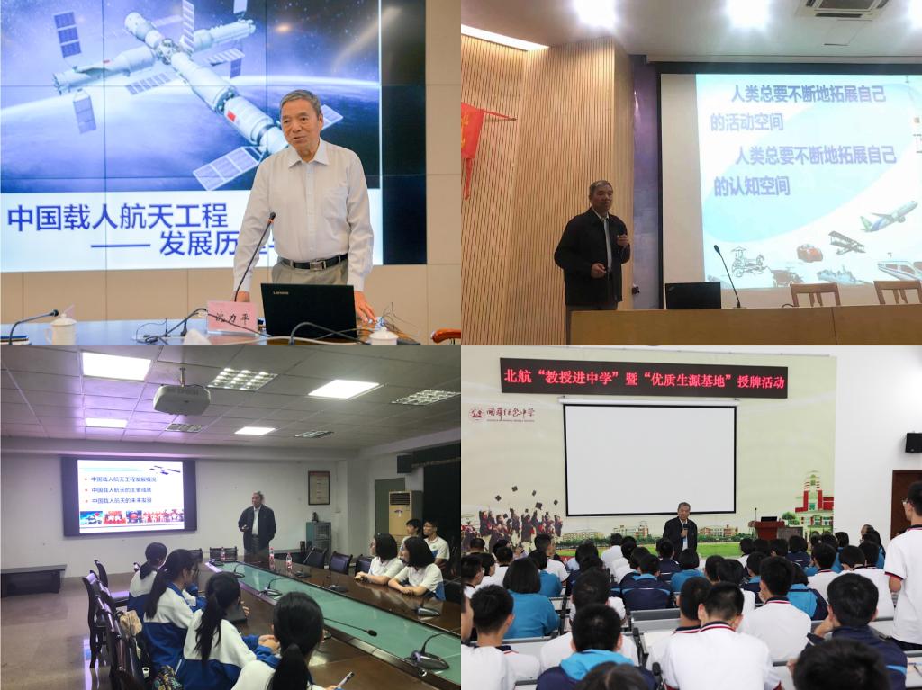 招生工作组一行分别到访了石门中学、顺德一中、顺德国华纪念中学、石门高级中学和佛山一中,在五所中学进行了“优质生源基地”签约和授牌,沈力平教授为顺德一中、国华纪念中学等四所中学的学生做了题为“中国载人航天工程发展历程与展望”的科普报告,结合自身的科研攻关经历,系统而生动地讲述了中国载人航天工程的发展历程概况、已经取得的主要成就以及未来的发展方向和展望,并与同学们进行了深入的交流互动,韩德仁教授为中学的同学们简要介绍了北航情况,并鼓励同学们刻苦学习,争取进入理想的大学深造。