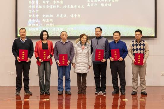 接下来,数学学院党委书记袁星宣读了2018年度在人才队伍、教学、科研和党建等工作中获得各级荣誉奖励的教师名单,并邀请参会嘉宾为获奖代表颁奖。数学学院的教师承担着全校所有数学类课程的教学工作,他们在三尺讲台上辛勤地传道授业,无私地奉献着青春芳华,为北航的人才培养奠定扎实的理科基础。在教学方面,本年度共获得两项国家级奖励和三十余项校级奖励;在科研工作方面,数学学院涌现了一批敢想敢干的年轻教师,在自然基金申报等科研工作中取得了很大的突破。获奖教师代表夏勇老师发表感言。