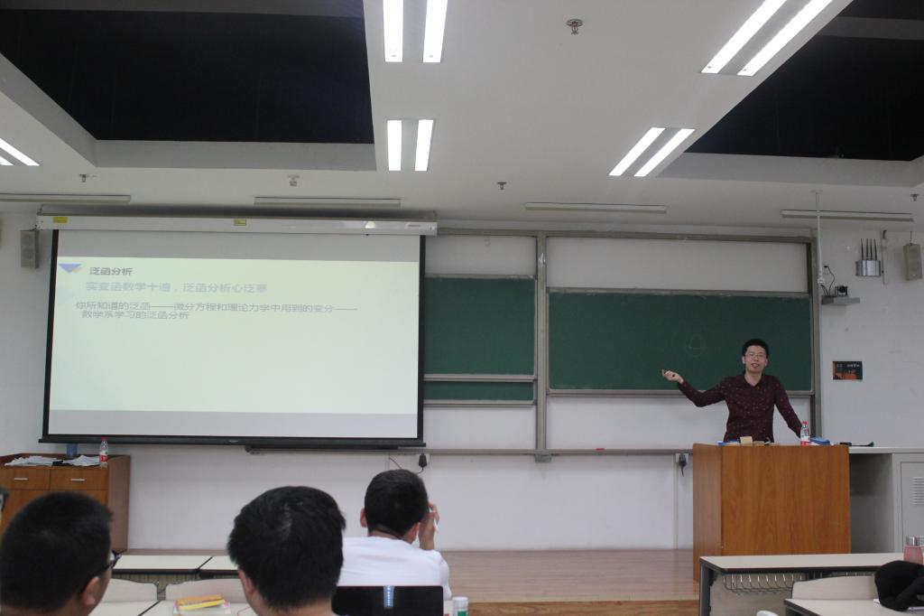 4月22日下午,由北航数学学院2013级博士生闫树学长为数学学院2015、2016级本科生带来了一场主题为“学在九系”的别开生面的讲座。现场座无虚席,气氛热烈,闫树学长与同学们亲切交流,为同学们解决了许多学习、科研、生活上的问题。闫树学长师从郑志明教授,研究生阶段共计发表第一作者论文5篇(包含3篇SCI检索文章)。曾任多届工科数学分析习题课助教及数海领航首席顾问。曾获得北航“研究生十佳”(博士)、国家奖学金(博士)、国家奖学金(硕士)等荣誉。2016年博士毕业后就职于中国信息通信研究院任大数据科研工程师。