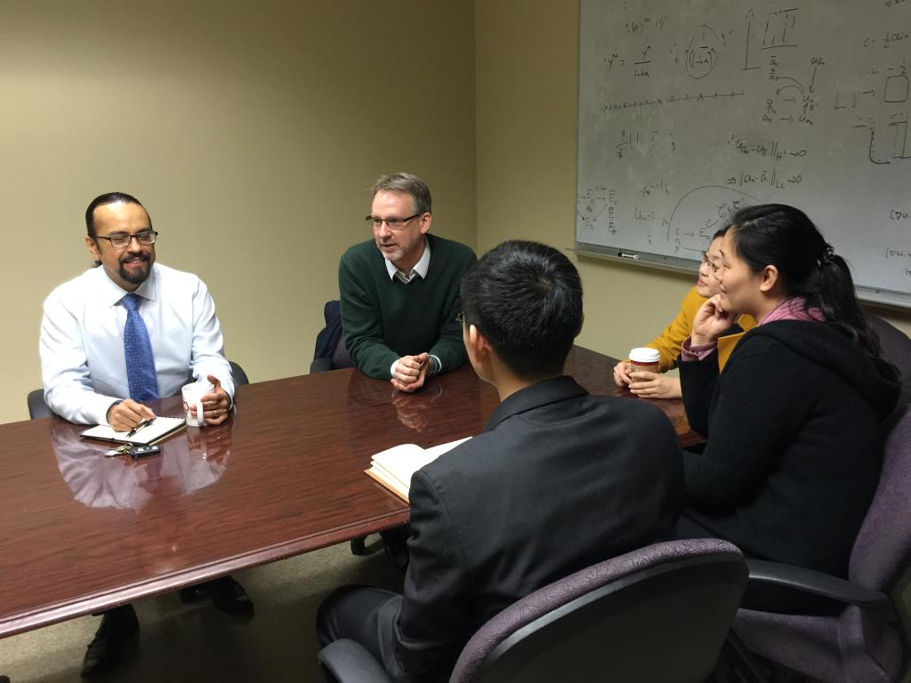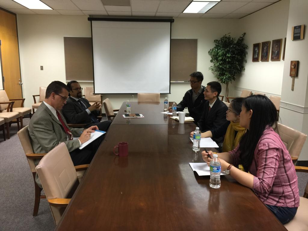 访问期间,代表团分别与TAMU理学院负责国际交流合作的副院长Lima Philo教授,TAMU中国学者学生联合会主席、数学系周建新教授,TAMU理学院负责本科生项目的副院长Timothy P. Scott教授,统计系系主任Valen E.Johnson教授,统计系研究生招生委员会主席黄建华教授,TAMU校长办公室常务主任克兰迪副教授等进行会面,交流洽谈双方在提升和延续数学快车道项目、统计快车道项目、研究生阶段资助计划、学生培养、教师之间的学术交流等多方面可行性的合作。双方在数学快车道3+1+1的推进、建设统计学科和课程、TAMU学生访华、教师短期授课交流等方面达成共识。