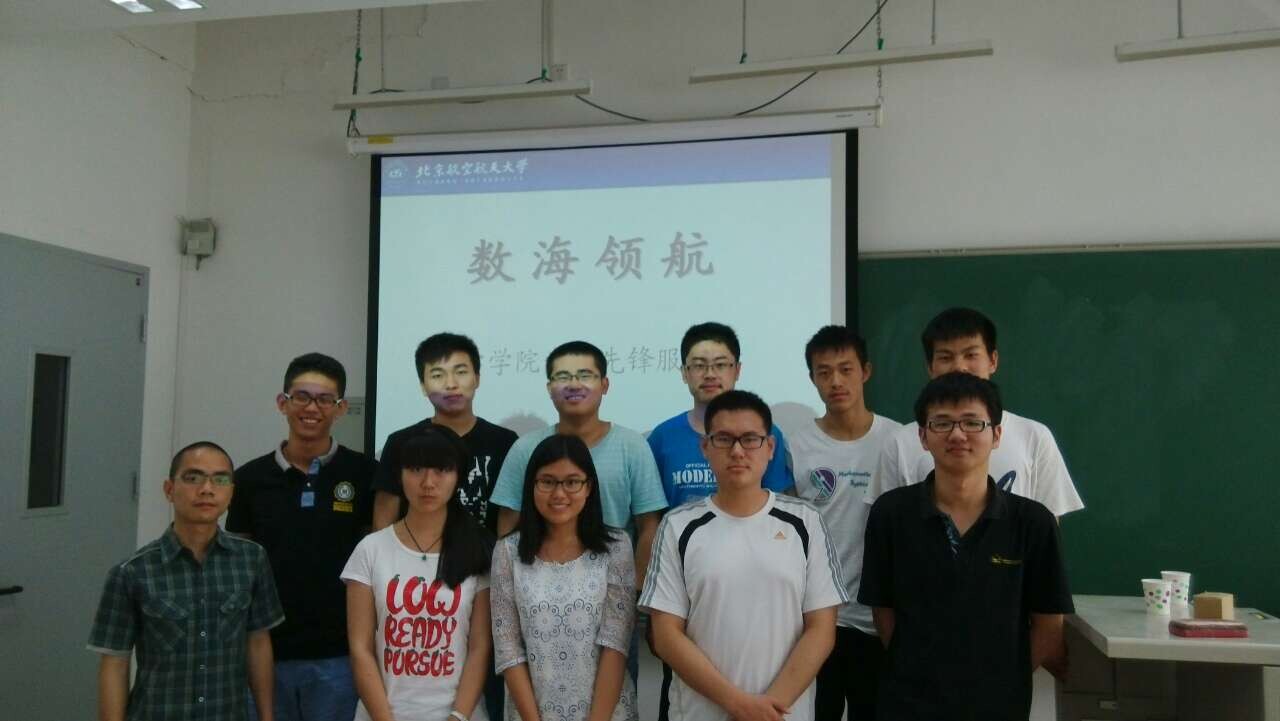 数海领航自2014年5月7日正式启动以来,每周一次,共历时7周,累积答疑同学数达43人次,其中最主要的答疑科目为是数学分析(14人次)和线性代数(8人次)。前来答疑的同学所属院系包含电子信息工程学院、自动化科学与电气工程学院、航空科学与工程学院、计算机学院、交通学院、可靠性与系统工程学院、宇航学院、仪器光电与工程学院、物理科学与核能工程学院、软件学院、高等工程学院等11个院系。
