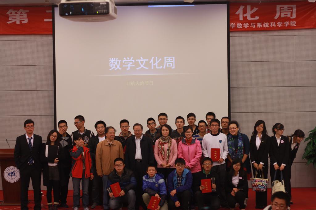 踏着北航61周年校庆的鼓点,簇拥着莘莘学子们青春热情的气息,由我院主办的第二届“数学文化周”活动于10月30日下午在沙河校区实验楼205会议室落下帷幕。沙河校区党委书记姚仰平老师、学生处副处长、沙河校区党委副书记董卓宁老师、我院党委书记李红捷老师以及学院相关领导老师出席了本届“数学文化周”闭幕式暨颁奖仪式。