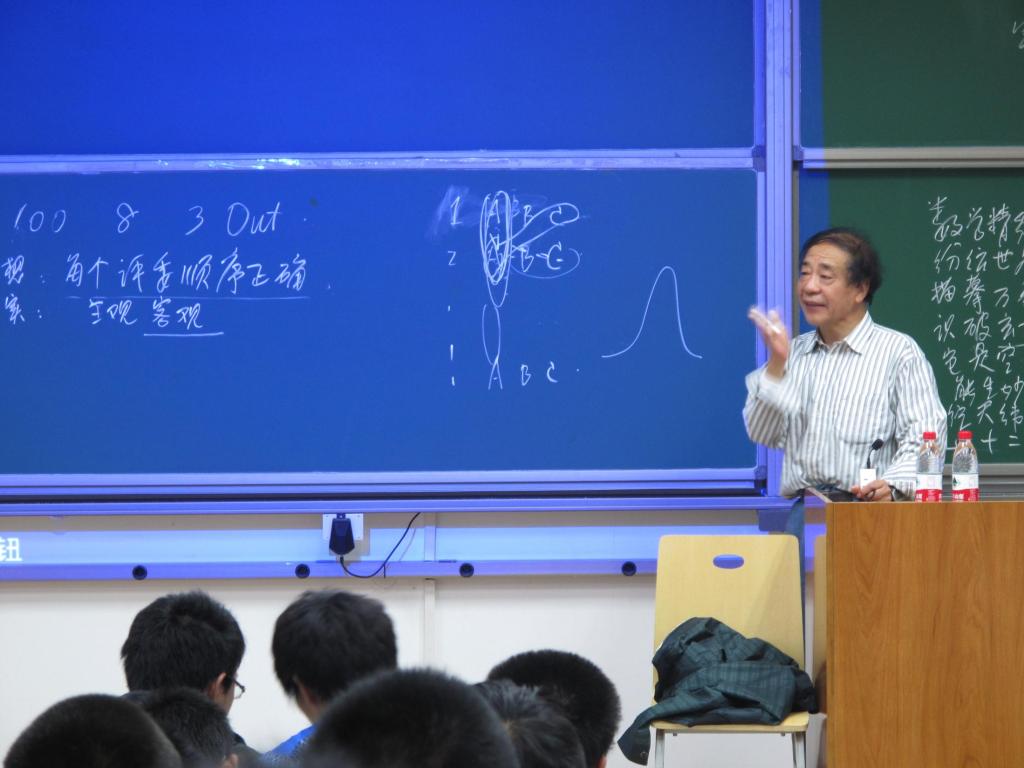 在闭幕式环节,院党委书记李红捷老师对本次活动给予了充分的肯定,并鼓励同学们要将数学文化的传承和发扬进行到底,数学与系统科学学院的同学们也向现场观众展示了他们在美赛建模、刷题大赛、冯如杯竞赛以及本届数学文化周期间的优异成绩和精彩表现。随后现场嘉宾们为本次文化周各项竞赛的获奖同学颁发了精美的奖杯奖品。颁奖仪式结束后,来自数学学院系统科学学院的全国教学名师李尚志老师对数学建模比赛进行了精彩的点评,李老师独特的思想理念,严谨的思维逻辑,幽默风趣的语言感染了在座的所有同学。