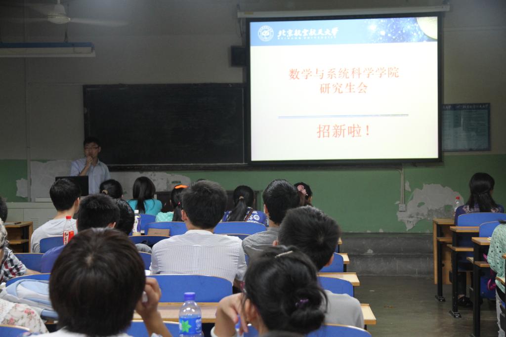 9月5日晚,数学与系统科学学院研究生会干部和2013级新生共聚主405,举行新一年的研究生会纳新活动。