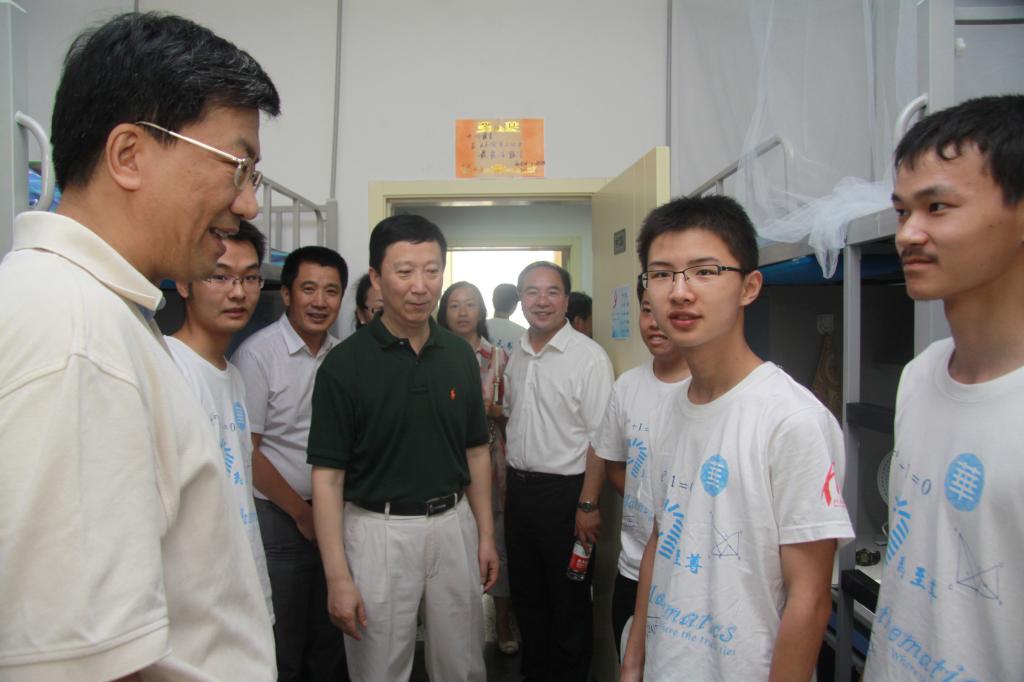 26日上午,胡凌云书记,怀进鹏校长等校领导巡视了迎新工作,当校领导来到数学与系统科学学院的报到处前,胡书记对辅导员工作给与了殷切的嘱托,怀校长也与华罗庚班年龄较小的同学进行了亲切的交流。在我院党委书记李红捷的陪同下,他们还到宿舍看望了华罗庚班的同学,为同学们送去了学校的关注和亲切的问候。 随着迎新工作的结束,数学与系统科学学院2012级的本科生开始了新的大学生活。