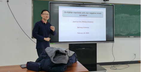 2025年2月20日上午,基础数学系邀请北京大学楚健春研究员作了题为“On Kahler manifolds with non-negative mixed curvature”的学术报告,报告在E404举行,由张世金老师主持。这个报告也是数学学院微分几何讨论班(2025年春季)系列学术报告中的第1讲。