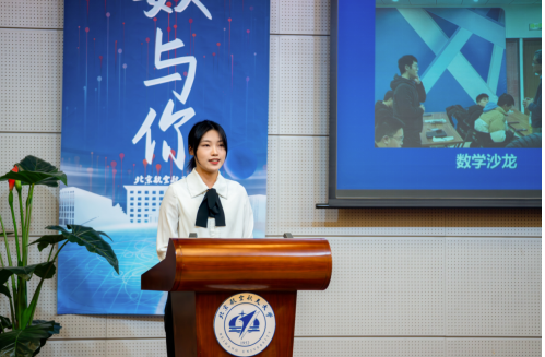 学生代表朱钰航在开幕式上发言。她从本研期间参与的各种数学与艺术类活动入手,分享了自己对数学与艺术的巧妙关系的理解,提到数学的魅力在于塑造世界的理性秩序,同时孕育无限的创造可能,期待与大家继续徜徉在数学与美学的海洋之中。