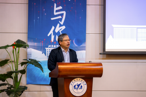 张继平、邓怡、韩德仁、魏茜、本研学生代表共同为第十二届北航数学文化节揭幕。伴随着倒计时的到达与绚丽的光影,2025年“艺新数与你”数学文化节正式开幕。