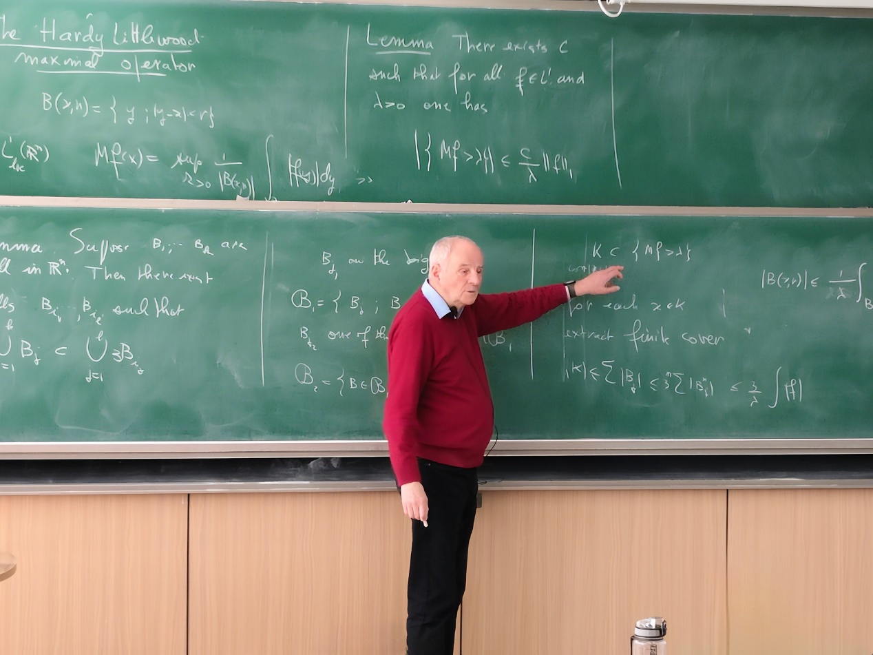 3月19日,讲习团第一课于沙河校区J4-301教室开讲。课程由巴黎萨克雷大学资深特级教师Jacques Peyrière教授主讲,经过前期选拔,来自华罗庚数学拔尖计划、数学强基、大班多位学生听课,课程还吸引了北京多所高校师生旁听。课程中,Jacques Peyrière 教授运用大量生动鲜活的实践案例,以深入浅出的方式,将几何测度论的基本概念和发展脉络徐徐展开,极大激发了学生们的好奇心与求知欲。授课结束后,Peyrière 教授还热情地邀请了部分学生共进午餐,师生交流进一步延伸。