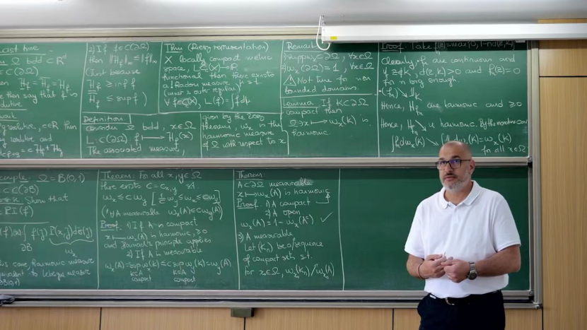 在为期三个月的课程中,法国巴黎萨克雷大学资深特级教师Jacques Peyrière教授、Arnaud Durand副教授,以及法国Orléans大学前副校长Athanasios Batakis教授先后主讲课程,深入剖析了几何测度论领域的基础理论框架,介绍了最新前沿研究成果与实际应用案例。课程之余,讲席团还开展了一系列学术交流活动,有效拓宽了同学们的国际学术视野,激发了科研创新潜能。